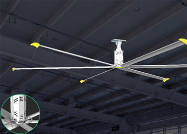 WYDS-C型超大型節(jié)能風(fēng)扇,最大直徑可達(dá)7.32米的巨大吊扇!采用空氣動(dòng)力學(xué)原理和先進(jìn)工藝制造的流線型扇葉,僅需采用1.5KW就可以驅(qū)動(dòng)大量的空氣,產(chǎn)生超大面積的自然微風(fēng)系統(tǒng),起到通風(fēng)和降溫的雙重功能。比起傳統(tǒng)的暖通空調(diào)和小型的高速風(fēng)機(jī),它有無可比擬的應(yīng)用優(yōu)勢(shì),堪稱高大空間通風(fēng)降溫的完美解決方案。WYDS-C型采用6扇葉結(jié)構(gòu),覆蓋面積可達(dá)1200m2.