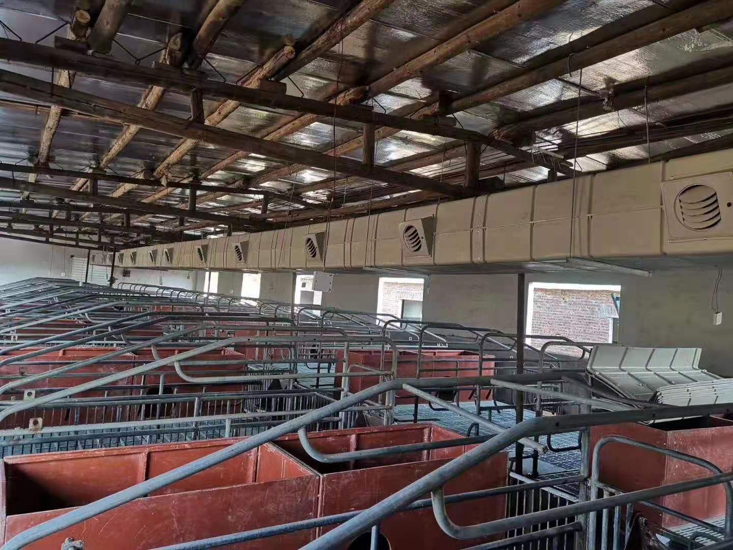 濕簾冷風機管道出風口位置能使溫度降低4-10℃,在設計時只需考慮采取定位送冷風的方式,使風口只對母豬定位欄吹涼風,而對旁邊活動的仔豬則完全不影響,從而達到母豬定點降溫與節能的良好效果。